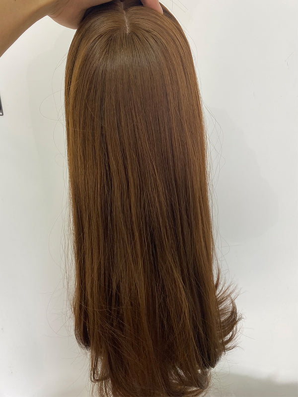 Whether for daily wear, Shabbat, or special events, this seamless chestnut brown Jewish wig ensures a natural, flawless finish with effortless styling versatility.