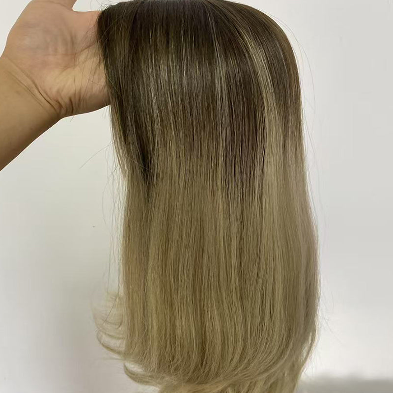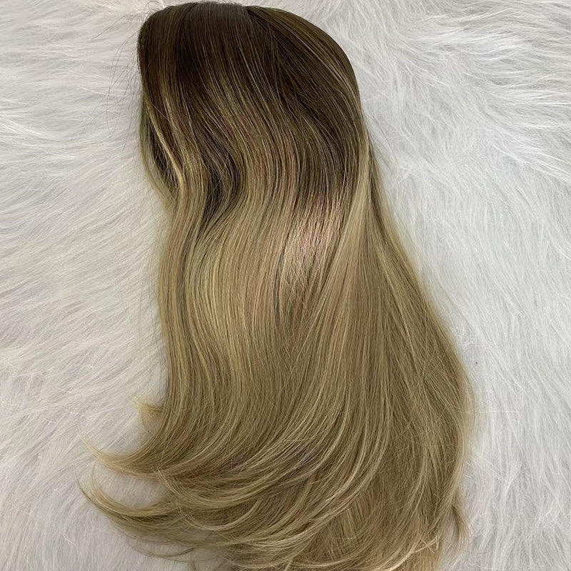 Long Layered Straight Shadow Blonde Silk Top Jewish Wig