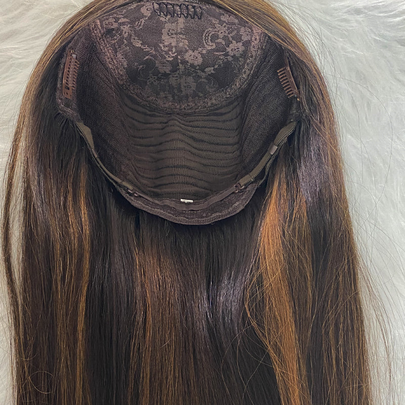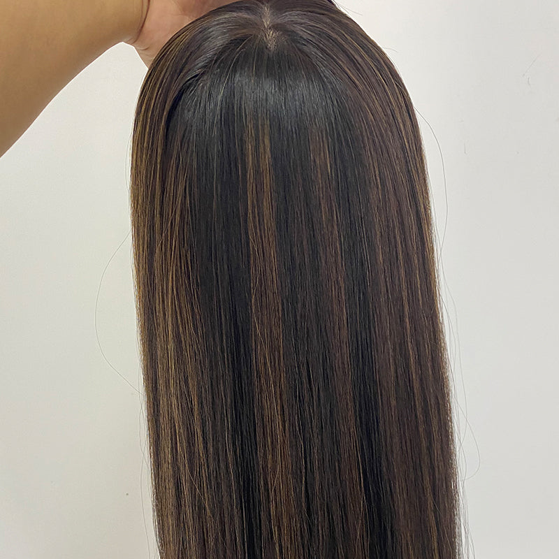 Midnight with Mocha Highlights Long Preminum Human Hair Wig